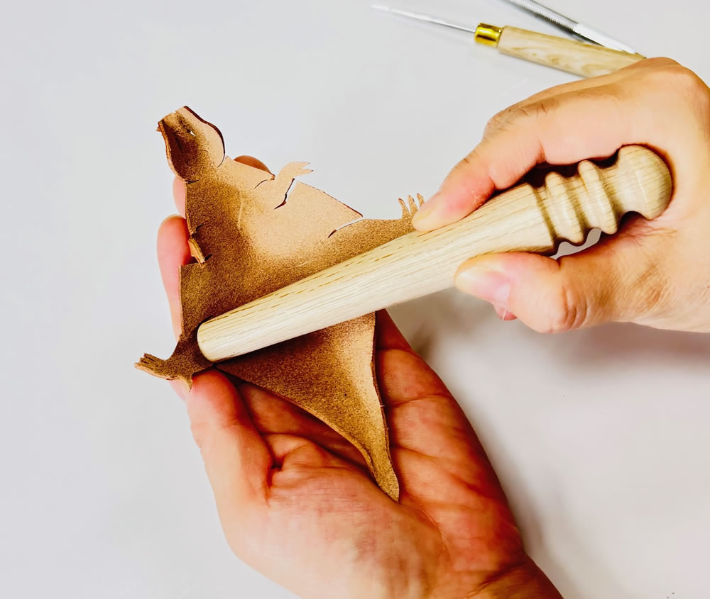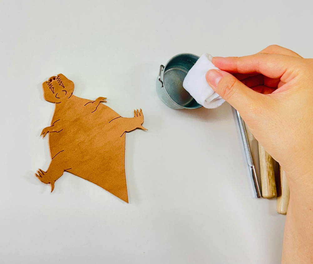 水で濡らすして成形した後、硬くなるのでお手入れクリーム等を使用して保革すると効果的です。